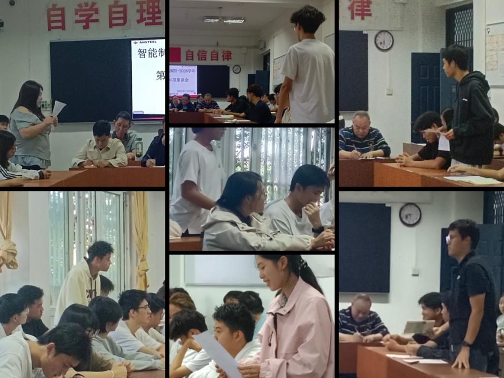 (智能制造学院罗蔡玲)为深入了解本学期开学以来的教学运行与学生学习状况,倾听学生心声,近期,智能制造学院在马家田与金江两校区分别组织召开了2025-2026学年第一学期半期学风交流座谈会。学院负责人、教学管理负责人、教师代表、辅导员代表以及各班级学生代表共同参与会议。