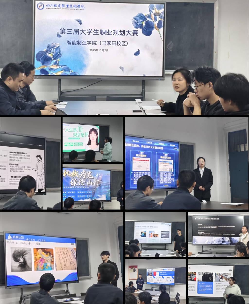 大赛严格遵循《四川机电职业技术学院关于举办第三届大学生职业规划大赛的通知》精神及学院实施方案,面向全院全日制在校学生,分设“成长赛道”与“就业赛道”,分别考察生涯发展理念树立与成长过程规划、求职实战能力与岗位适应度。大赛启动后,得到同学们广泛关注与积极参与,全院1542名同学参赛。11月初,各班级完成班内选拔并择优推荐至少1名选手晋级。12月初,学院在马家田校区与金江校区组织校区复赛,两校区各选出3名表现优异的选手,6名同学于12月9日会师学院决赛。