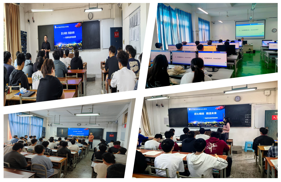 当前,智能制造发展迅猛,AutoCAD、UG NX、CATIA等数字化专业软件已成为行业核心工具。其中,AutoCAD广泛应用于精准绘制工程图纸与构建数字化模型,UG NX、CATIA则支撑三维建模、数控编程及生产仿真,是实现生产智能化、高效化的关键技术。本次讲座紧扣高职教育“以实践为核心、以就业为导向”的育人理念,结合机械行业前沿动态与企业实际岗位需求,聚焦核心专业软件的应用,精准回应学生在专业学习中的痛点与未来职业发展的需求。