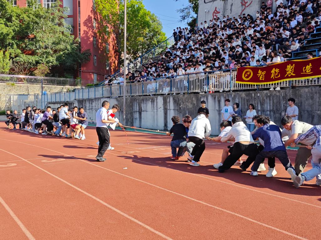 (智能制造学院阿牛拉呷)为深入落实教育部“身上流汗,眼里有光”的育人理念,丰富校园文化生活,强化班级凝聚力与团队协作精神,营造积极向上、团结奋进的育人氛围,近日,智能制造学院2026年“凝心聚力”班级拔河比赛在马家田校区运动场顺利举办。
